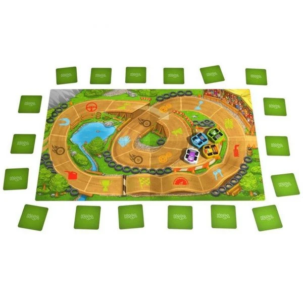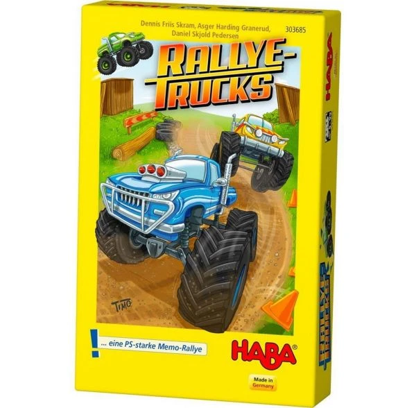 1 Spielplan, 18 Plättchen, 4 Rallye-Trucks in 4 Farben, 1 Spielanleitung.