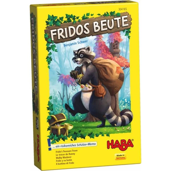 1 Spielfigur Frido Waschbär, 16 Beutekarten, 1 Finderlohnkarte, 50
