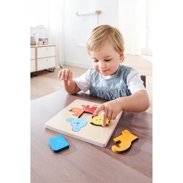 Hund, Katze, Maus: Kinder lieben Tiere und Haustiere können ganz besondere Freunde sein! Mit diesem Holzpuzzle können sie Hund, Katze und Maus Stück für Stück zusammensetzen. Das macht alleine oder gemeinsam viel Spaß und schult die Feinmotorik.