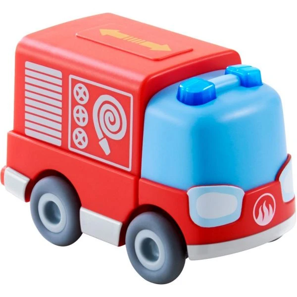 Tatütata – das signalrote Kullerbü – Batterie-Feuerwehrauto von HABA ist dank seines raffinierten Batterieantriebs besonders schnell am Einsatzort. Das Kullerbü-Fahrzeug fährt von selbst durch die Bahnen. Besonders praktisch: Um die Batterie zu schonen, stoppt das Fahrzeug automatisch nach einer Minute. Wer mag, kann das Batterie-Feuerwehrauto natürlich auch manuell bedienen, zum Beispiel fürs freie Spielen am Boden. Das Kullerbü – Batterie Feuerwehrauto von HABA ist ein prima Geschenk für alle jungen Feuerwehr-Fans ab 2 Jahren: Es animiert zum Ausdenken und Nachspielen spannender Feuerwehr-Geschichten und fördert spielerisch die Feinmotorik.