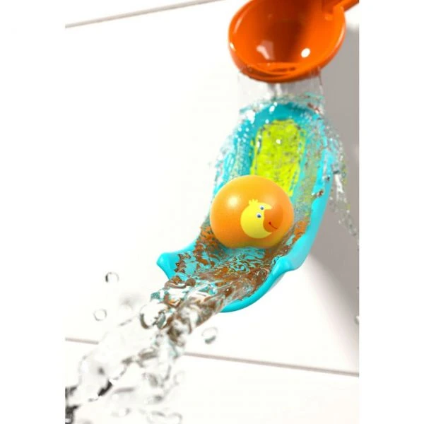 Kuller, kuller, plitsch, platsch: Bär, Ente, Frosch und Maus sausen vergnügt die Wasserrutsche hinunter, um schwungvoll ins Badewasser zu plumpsen. Ein spritziges Kullervergnügen für die Badewanne mit bis zu 4 Kugeln.