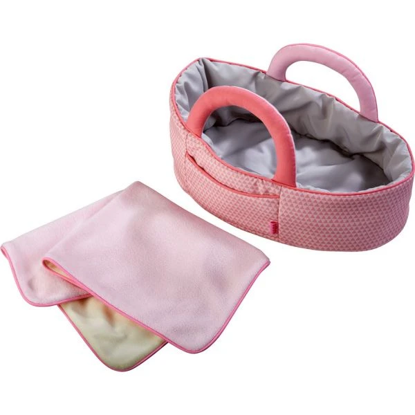 Puppenbett für daheim eignet sich die HABA-Puppentragetasche Rosarot