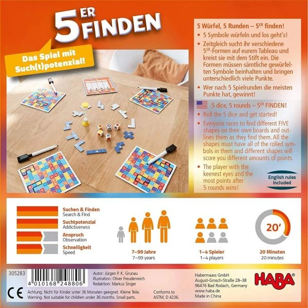 5 Würfel, 5 Spielrunden – 5ER finden! Zeitgleich suchen die Spieler