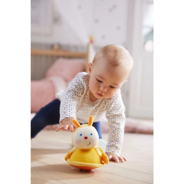 Die süße HABA Aufziehfigur Bienchen hat einen tollen Spieleffekt: an der Schnur ziehen, schon dreht sich die Biene im Kreis