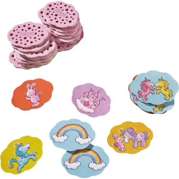 Das Spiel, das einfach nie seinen Reiz verliert, ist das Memospiel. Bei Einhorn Glitzerglück – Memozauber von HABA spielen die Spieler ab 3 Jahren gemeinsam mit Einhorn Glitzerglück und ihren Freunden Memo. Wer sich die gleichen Motive gut merken und so die meisten Paare sammeln kann, gewinnt! Zu entdecken gibt es fantastische Motive wie Einhörner, Regenbogen und vieles mehr. Und alle Plättchen funkeln magisch dank schönem Glitzerstaub. Einhorn Glitzerglück – Memozauber von HABA begeistert die jungen Spieler mit hübschen Motiven und fördert spielerisch Konzentration und erstes Regelverständnis.