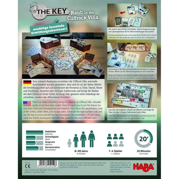 Origineller Spielmechanismus mit Zahlencode als Ergebnis-Kontrolle Eine schwere Raubserie erschüttert die Cliffrock Villa, wertvolle