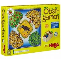 Auch beim HABA Spiel Obstgarten mini darf wieder geerntet werden, denn im Obstgarten hängen die saftigsten Kirschen, Äpfel, Pflaumen und Birnen. Doch die will ein anderer stibitzen: Rabe Theo ist schon im Landeanflug! Jetzt brauchen die Spieler etwas Würfelglück. Gemeinsam versuchen sie, die Früchte zu ernten, bevor der freche Rabe den Obstgarten erreicht. Bei diesem kooperativen Farbwürfel-Spiel gewinnen oder verlieren die Spieler gemeinsam gegen den Raben. Kinder trainieren mit Obstgarten mini ganz nebenbei die Zuordnung von Farben und Formen. Der HABA Spieleklassiker Obstgarten eignet sich in dieser Mini-Variante nicht nur für unterwegs oder den Urlaub, sondern auch als Geschenk für Kindergeburtstage, das Osternest oder den Nikolausstiefel.