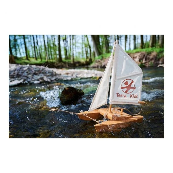 Inhalt: 1 Korkrumpf, 1 Korksteuerruder, 3 Holzstäbe mit Ringösen, 2 Segel, 1 Sisalschnur (5 m lang), 3 Ösenschrauben, 1 Anleitungsheft.