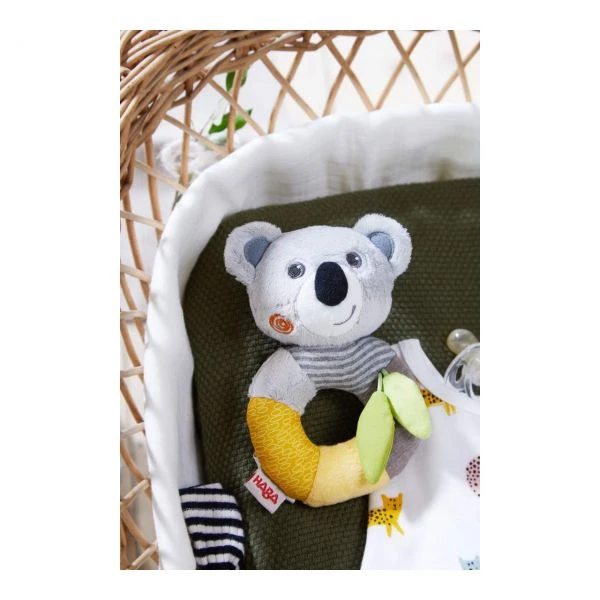Der wunderbar weiche Greifring ist für kleine Kinderhände gut zu fassen und rasselt, wenn man ihn schüttelt