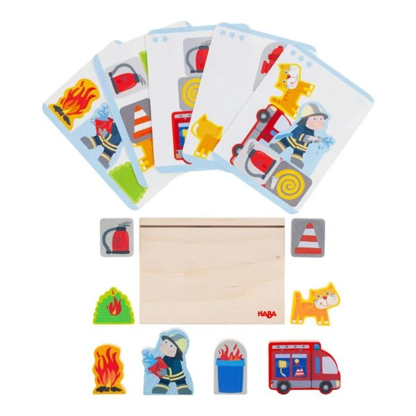 Auf der Grundplatte können Feuerwehrmann & Co. immer wieder neu angeordnet und gestapelt werden