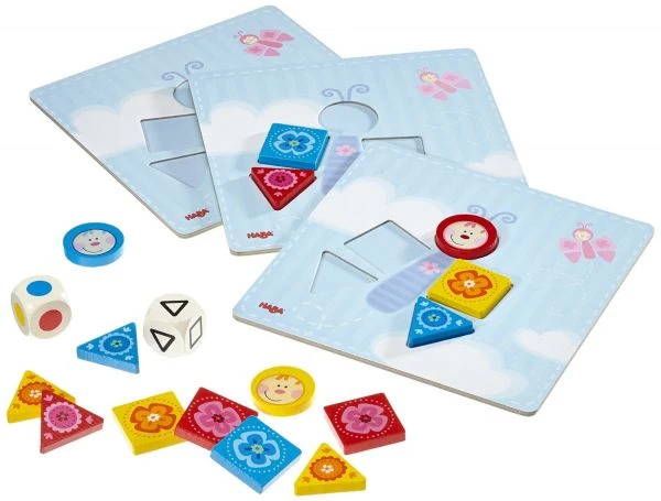 würfeln, dann die passende Form oder Farbe suchen und an die