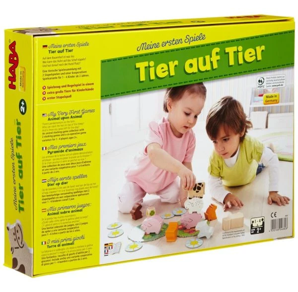 Stapelspielen und einer kooperativen Spielvariante für 1 – 4 Kinder ab 2