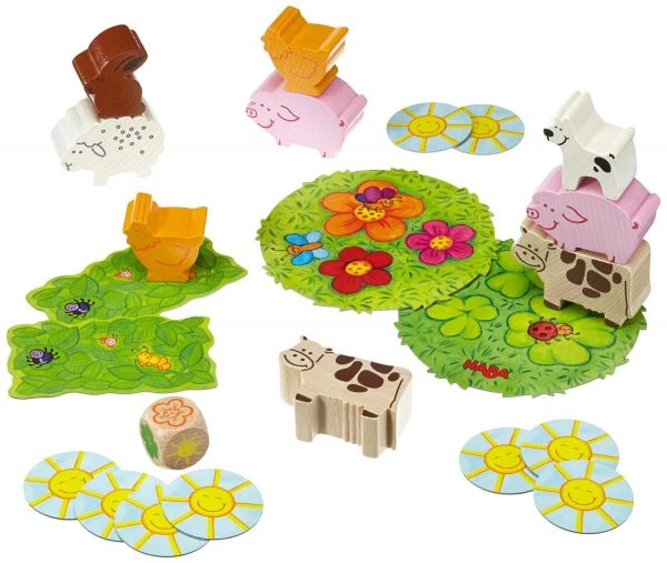 Auf dem Bauernhof ist was los: Wer kann das Huhn auf das Schaf stapeln?