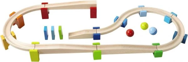 Kugelbahn-Spaß ohne Verrutschen! Die farbigen Verbindungssteine haben